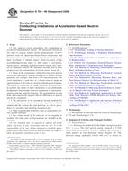 1.1 This practice covers procedures for irradiations at accelerator-based neutron sources. The discussion focuses on two types of sources, namely nearly monoenergetic 14-MeV neutrons from the deuterium-tritium T(d,n) interaction, and broad spectrum neutrons from stopping deuterium beams in thick beryllium or lithium targets. However, most of the recommendations also apply to other types of accelerator-based sources, including spallation neutron sources (1). Interest in spallation sources has increased recently due to their proposed use for transmutation of fission reactor waste (2).