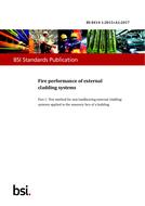 BS 8414-1:2015+A1:2017 provides a test method for determining the fire performance characteristicsof non?loadbearing external cladding systems, rainscreen overcladding systems and externalwall insulation systems when applied to the face of a building and exposed to an external fireunder controlled conditions. The fire exposure is representative of an external fire source or afully-developed (post-flashover) fire in a room, venting through an opening such as a windowaperture that exposes the cladding to the effects of external flames, or from an external fire source.