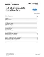 This standard defines a bit-serial data structure and the coaxial cable interface specifications for 1.5 Gb/s [nominal] Signal/Data Serial Interface to carry either 1280×720, 1920×1080 or 2048×1080 active pixel formats mapped into the 1.5 Gb/s payload. This standard defines the method of serializing the parallel source format data to a serial bit stream. This interface may also carry packetized data mapped into the 1.5 Gb/s transport payload providing the constraints imposed by the reference source image formats are observed.