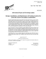 Design, Installation, and Maintenance of Coating Systems for Concrete Used in Secondary Containment