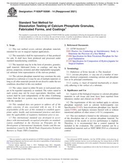 ASTM F1926/F1926M – Standard Test Method for Dissolution Testing of Calcium Phosphate Granules, Fabricated Forms, and Coatings