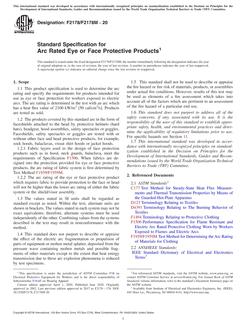 1.1”This product specification is used to determine the arc rating and specify the requirements for products intended for use as eye or face protection for workers exposed to electric arcs. The arc rating is determined in the test with an arc which has a heat flux value of 2100 kW/m² [50 cal/cm²/s]. Products are tested as sold.