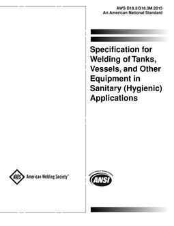 AWS D18.3/D18.3M – Specification for Welding of Tanks, Vessels, and Other Equipment in Sanitary (Hygienic) Applications
