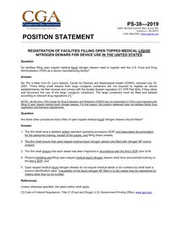 CGA PS-38 – CGA Position Statement on Registration of Facilities Filling Open Topped Medical Nitrogen Dewars for Device Use