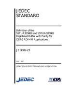 This standard defines standard specifications of DC interface parameters, switching parameters, and test loading for definition of the SSTUA32S869 and SSTUA32D869 registered buffer with parity for driving heavy load on high-density DDR2 RDIMM applications. A typical application would be a 36 SDRAM planar DIMM. The SSTUA32S869 and SSTUA32D869 are identical in functionality to the SSTU32S869 and SSTU32D869 devices respectively but specify tighter timing characteristics and a higher application frequency of up to 410MHz.